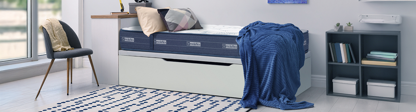 Recomendação: Comece um ritual noturno para se preparar para uma boa noite de sono. Para isso, desligue todos os seus dispositivos eletrónicos pelo menos 30 minutos antes de dormir. Escolha uma almofada adequada à sua posição de sono e um colchão Mira, que garante um sono saudável e fresco, com as suas fibras hipoalergénicas e adaptabilidade máxima.